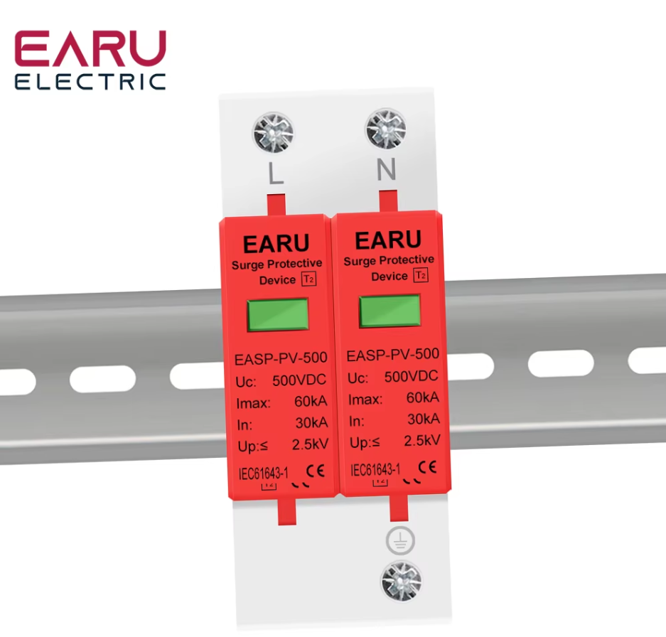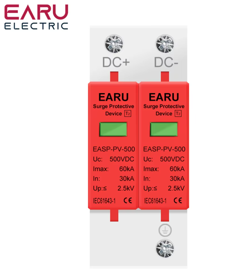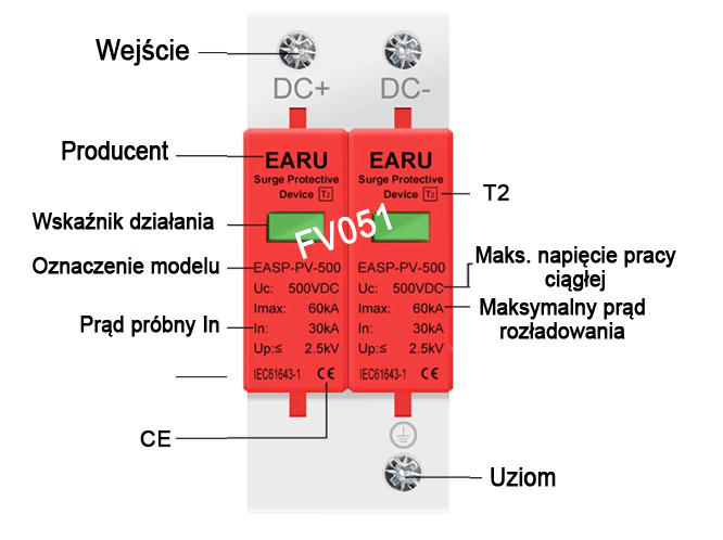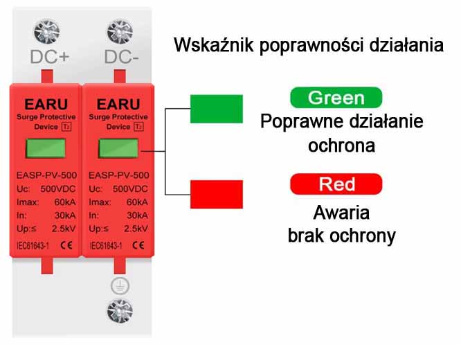 Ochronniki przepięć T2 służą do ochrony instalacji fotowoltaicznych- typ TN, TT, przed napięciami indukowanymi, łączeniowymi oraz wywołanymi przez czynniki atmosferyczne. Wyposażone są w wizualny wskaźnik działania (zielony – ochrona, czerwony – brak ochrony).